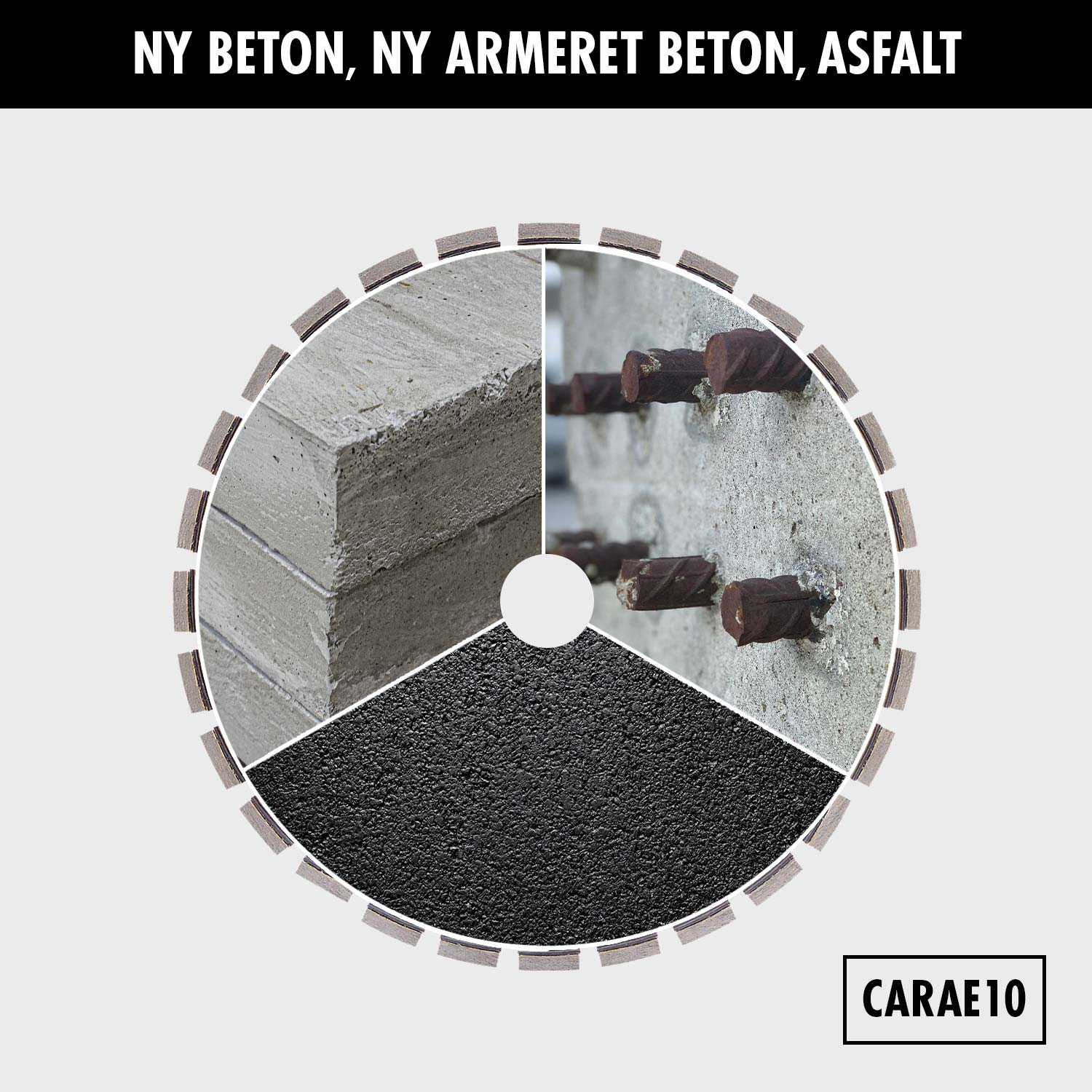 • Til skæring af ny beton, ny armeret beton og asfalt