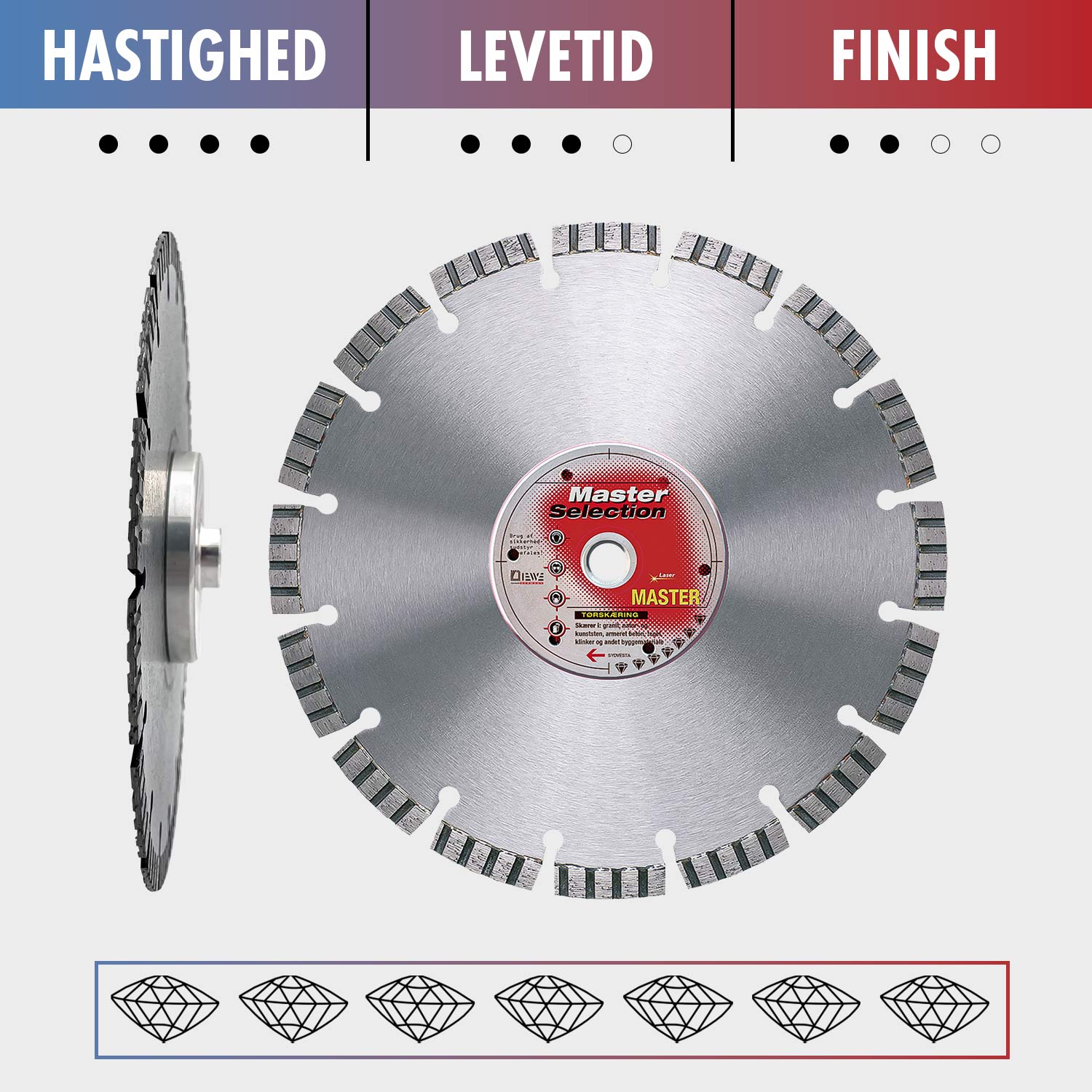 • Med 10 mm aggressive lasersvejste segmenter