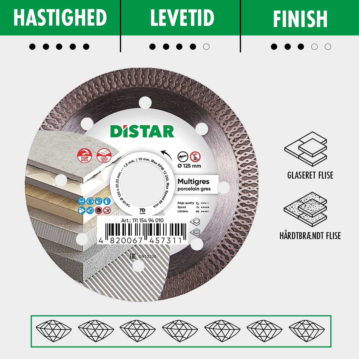 • Hurtig skæring af hårdtbrændte fliser med 20 mm tykkelse