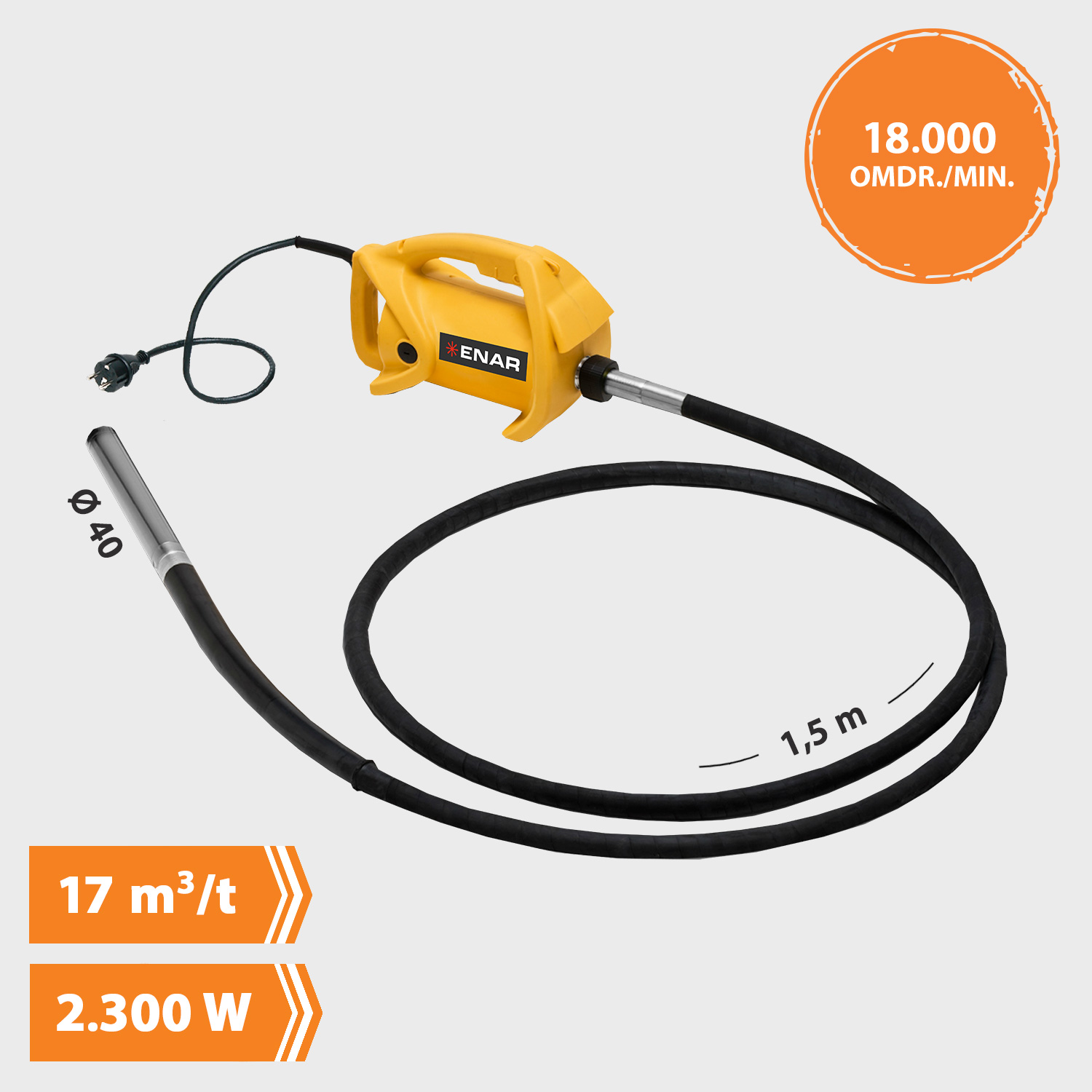 • Forstærket vibratorslange med ekstra beskyttelse på de mest udsatte punkter på slangen