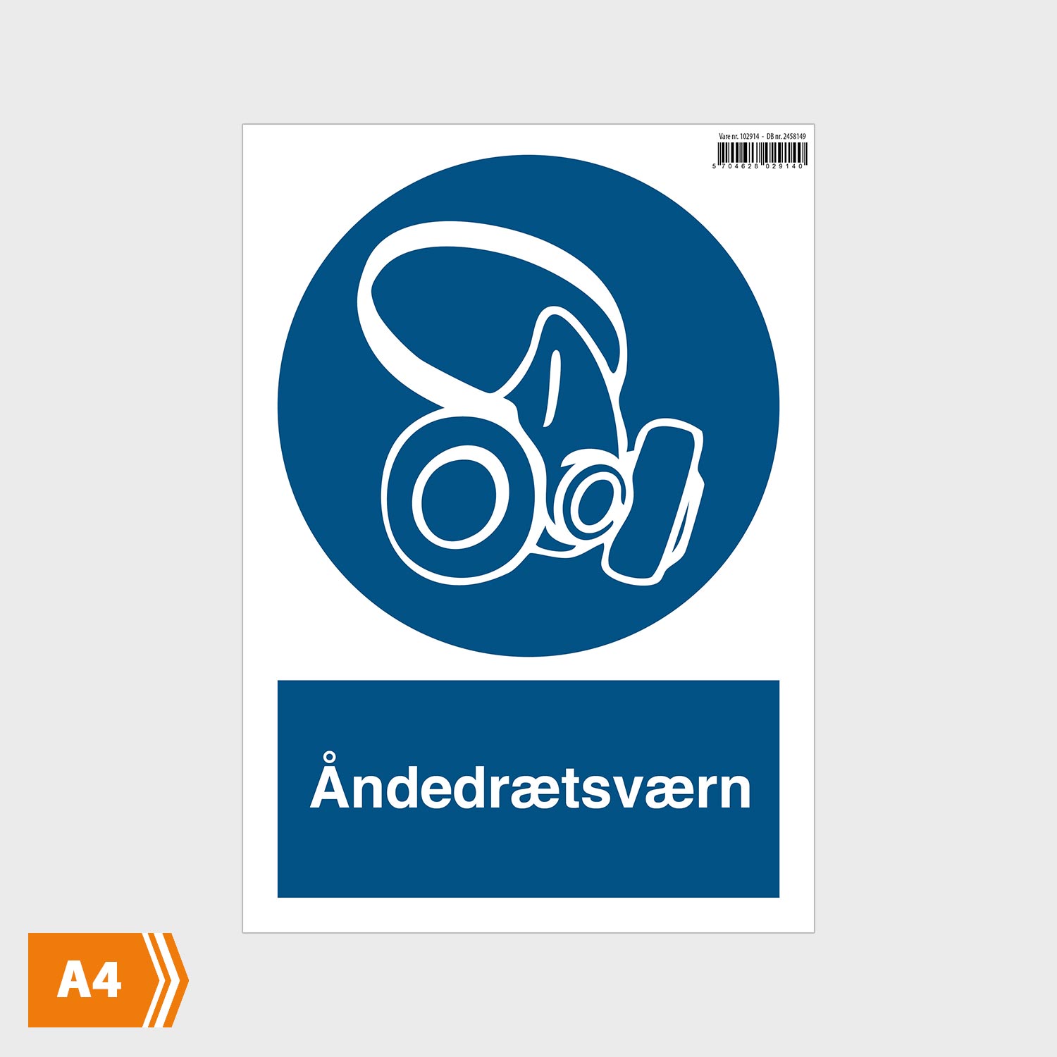 • Skiltet viser, at det er påbudt at bære egnet åndedrætsværn, med mindst P2-filter • 1 mm plast • A4