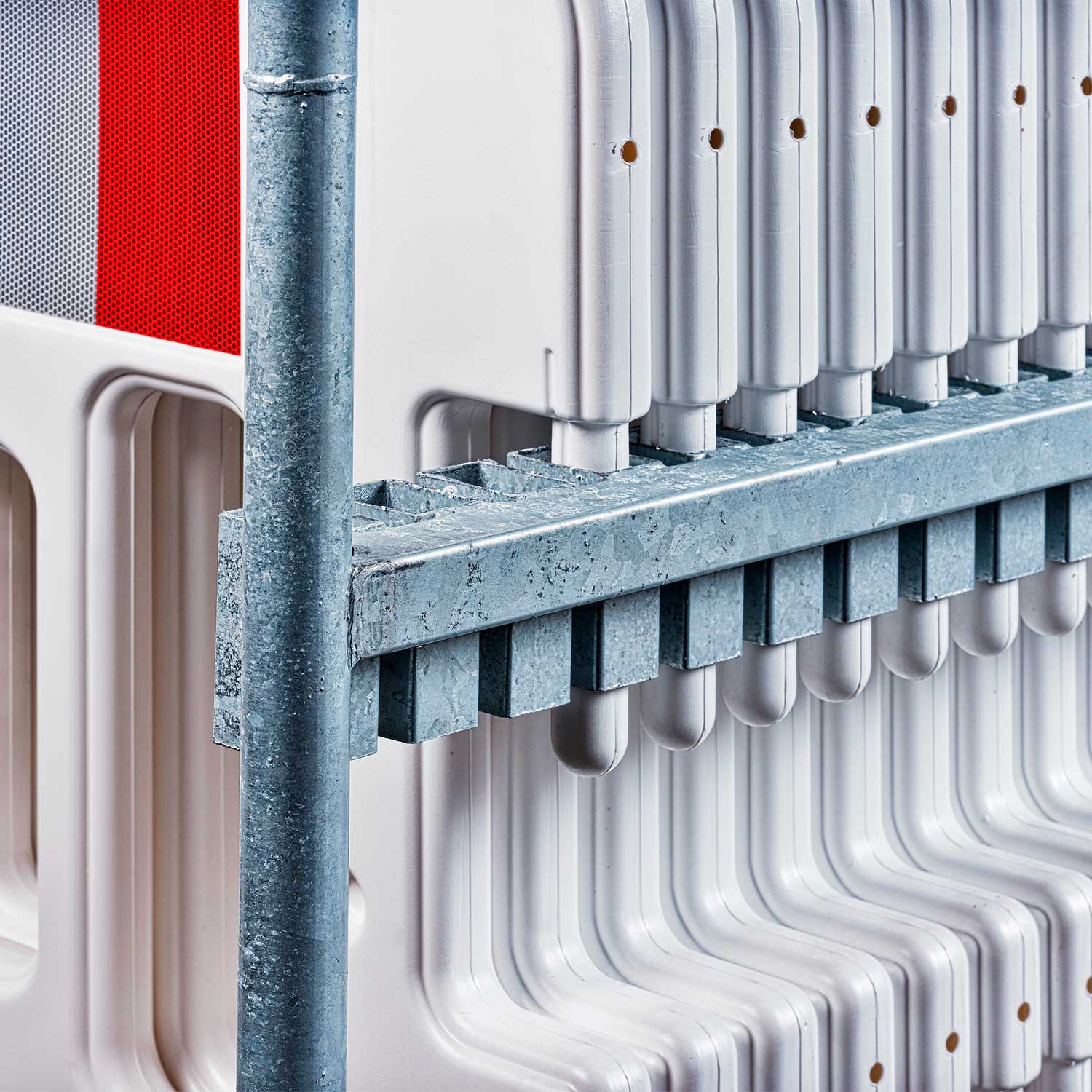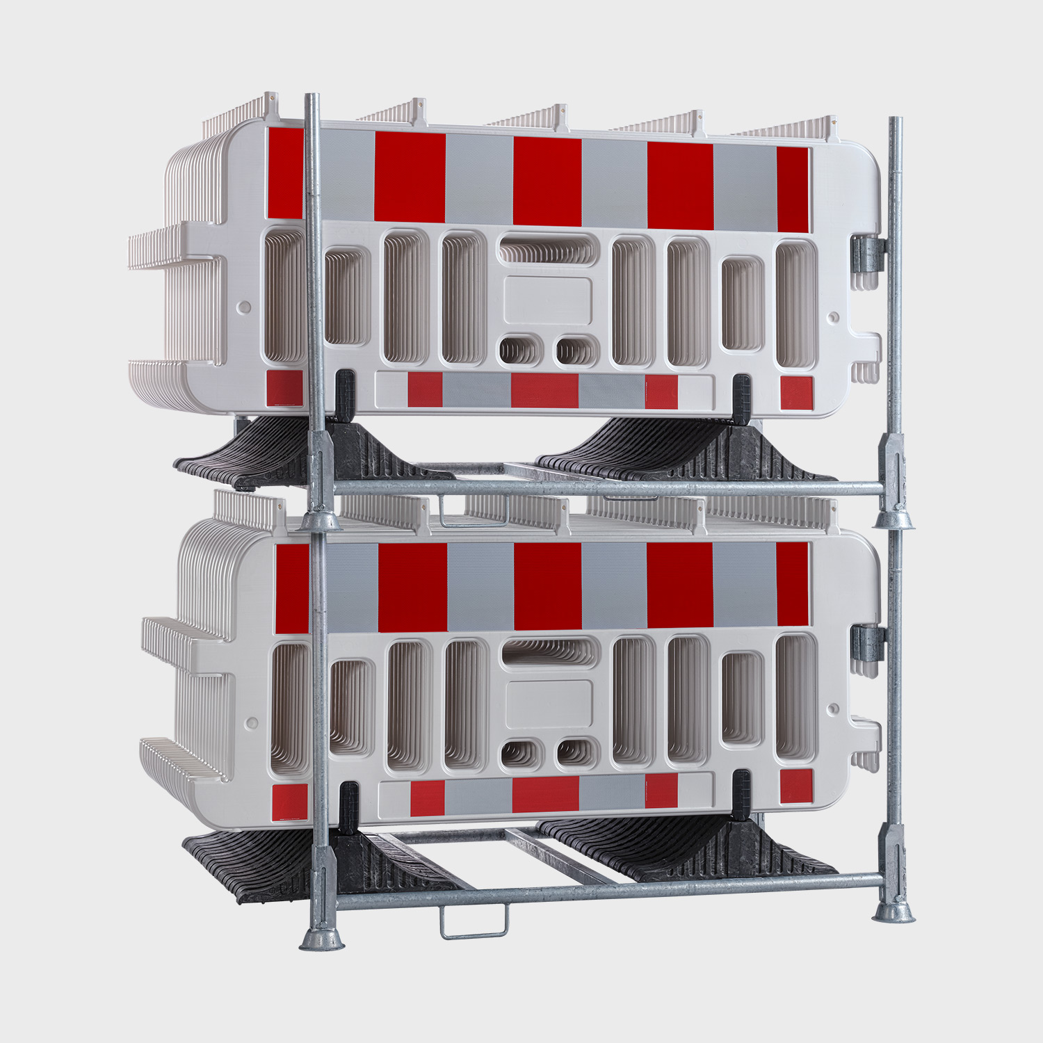• Til sikker transport og opbevaring op til 20 spærrebom – drejbar fod